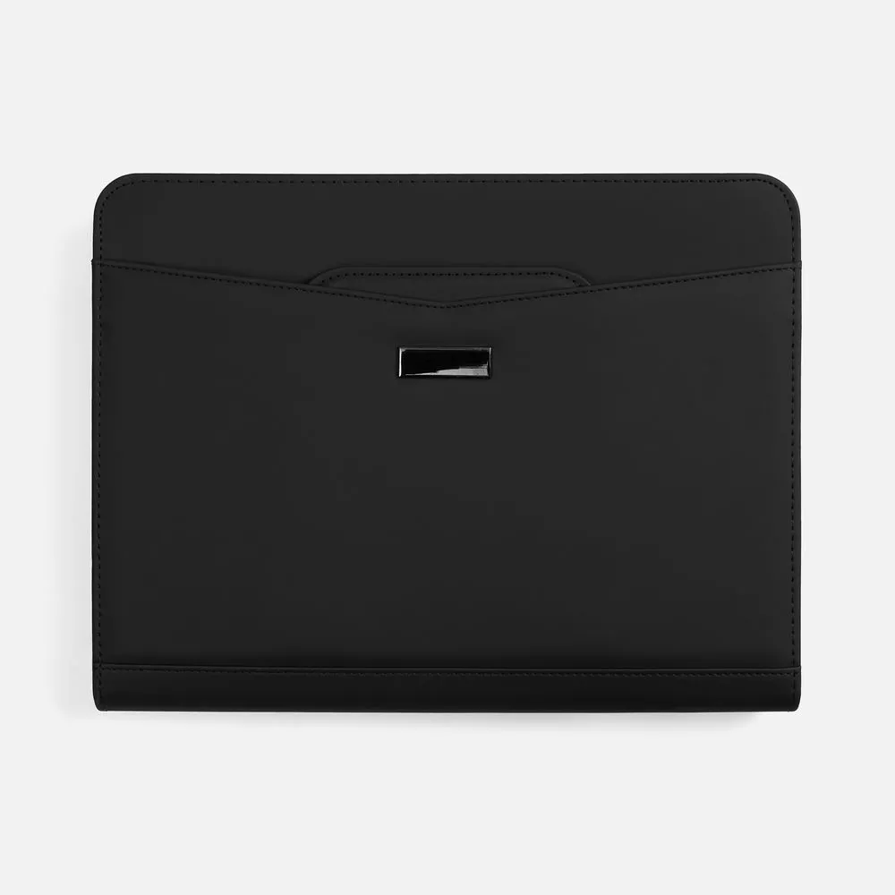 Во вместительной папке предусмотрено множество отделений для визиток, бумаг и письменных принадлежностей — для идеальной организации пространства. Особое преимущество — встроенный блокнот с листами в линейку, который можно легко открепить и положить на его место свои записи, например, для презентаций.