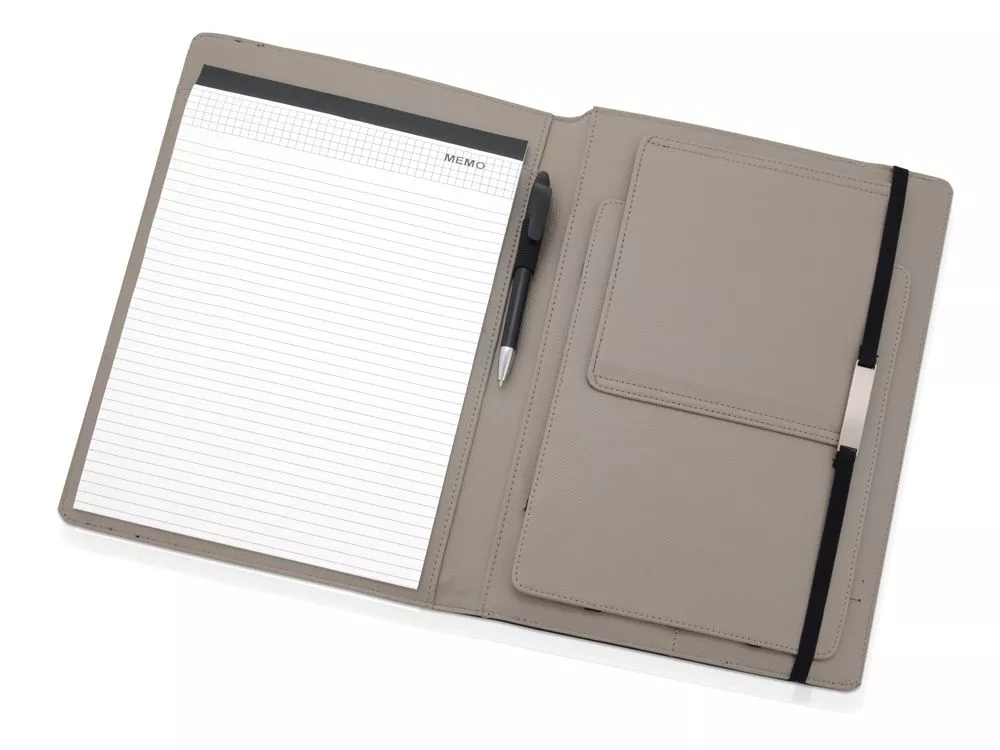 Очень удобная папка для бумаг оснащена подставкой под IPad и блокнотом. Благодаря ей документы не помнутся во время транспортировки. Строгий дизайн завершит ваш деловой стиль.