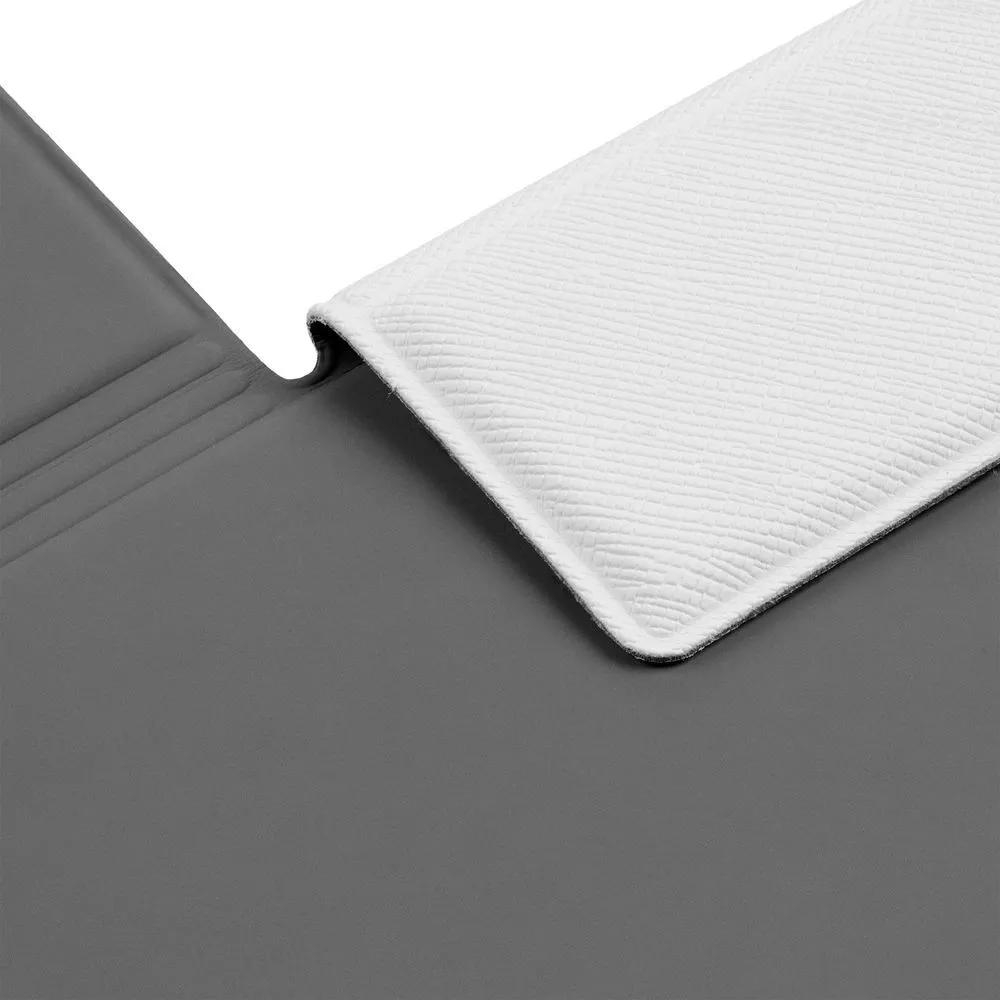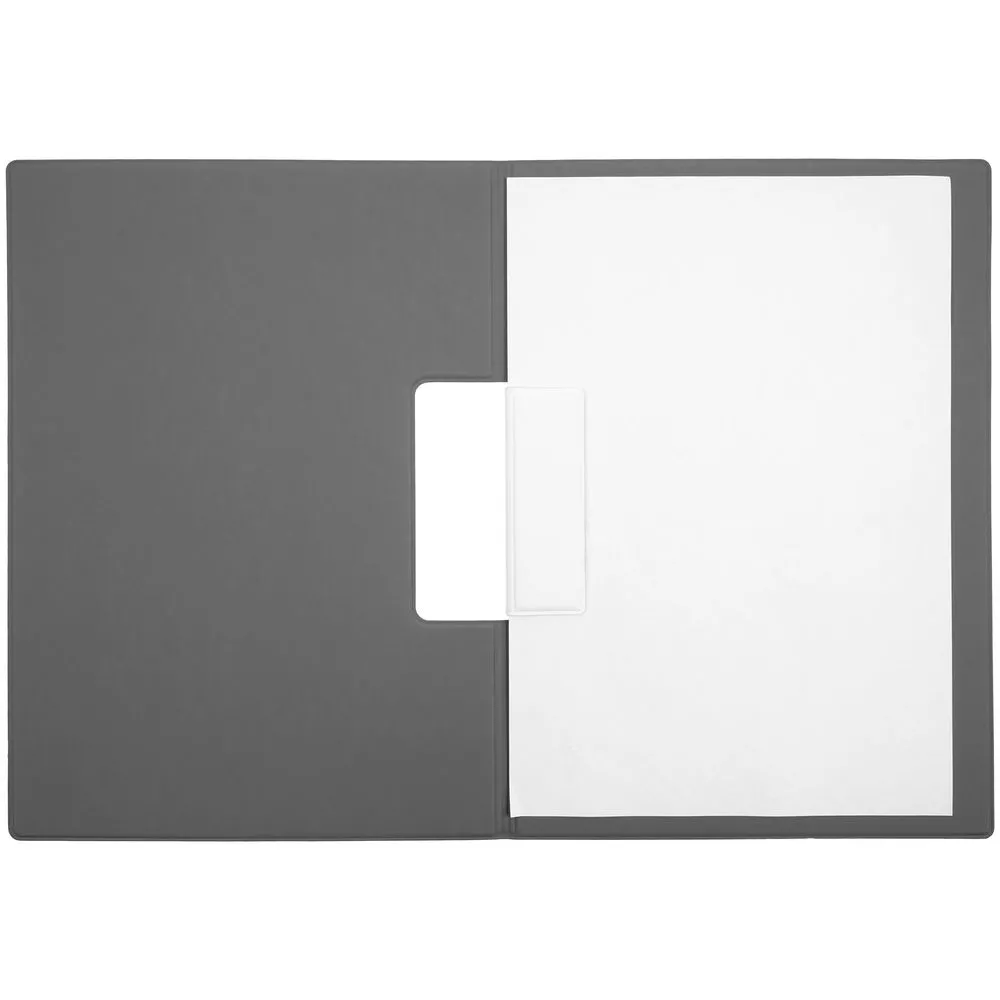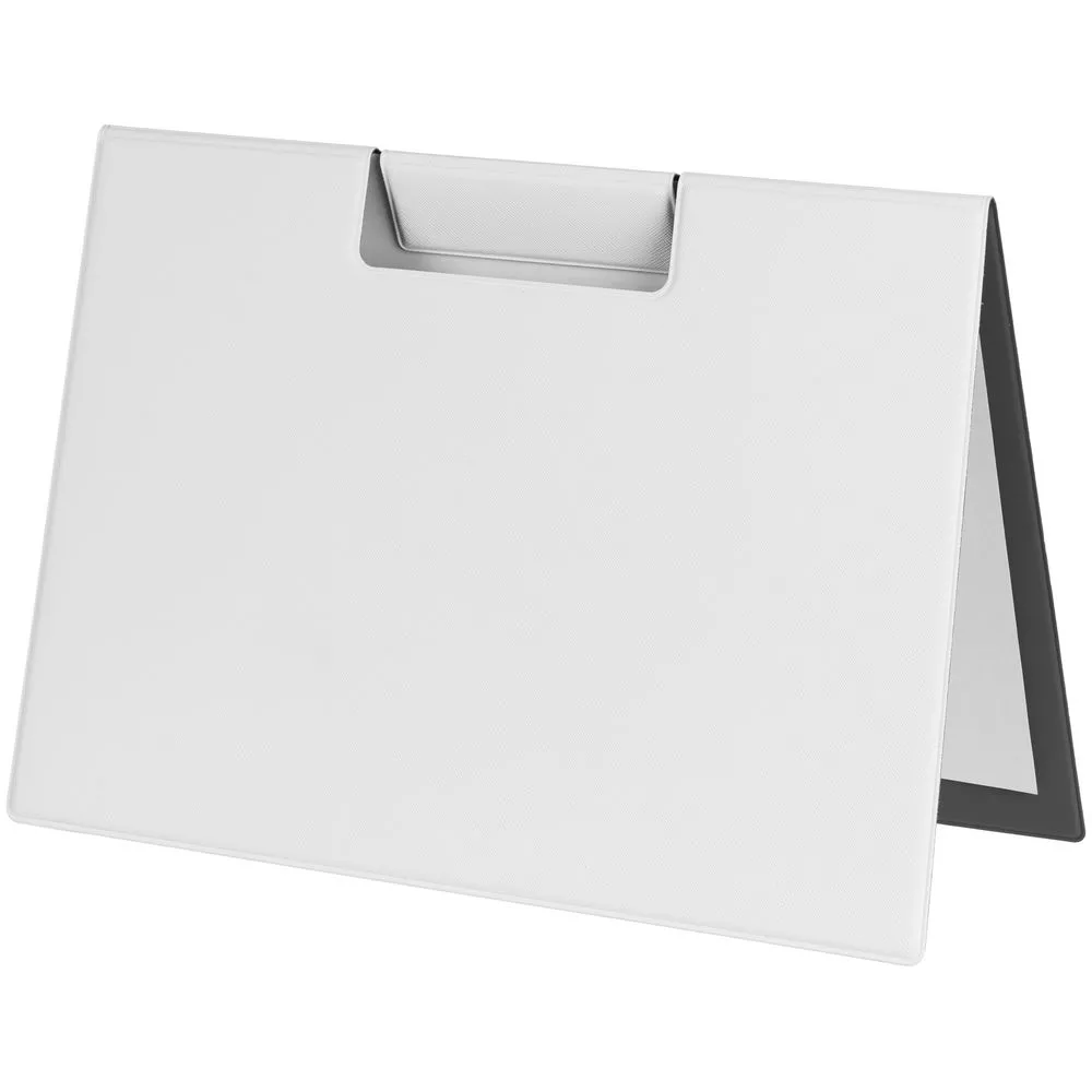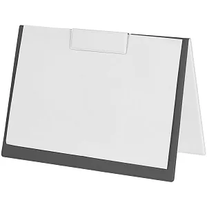 Папку можно использовать в стандартном вертикальном формате или перегнуть обложку и поставить в качестве таблички горизонтально. Магнитный клип удерживает до 10 листов.