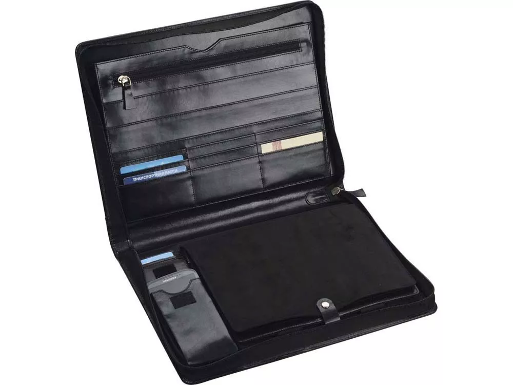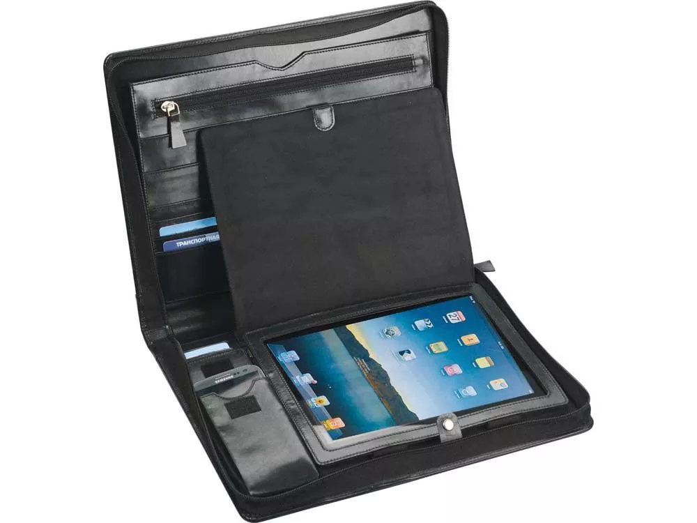 Полезный и практичный подарок. Папка руководителя представляет собой вместительный органайзер, в котором можно аккуратно хранить документы, визитки и прочие важные вещи. В папке предусмотрено крепление для планшета 18 х 23,5 см. Тиснение (Блинт) на данный товар осуществляется бесплатно. Оплачивается только настройка оборудования в размере 5800 рублей на весь тираж.
