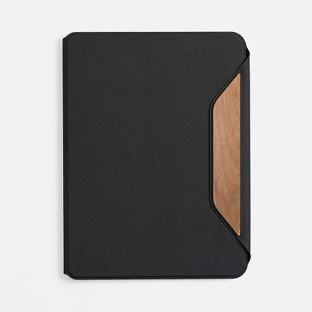 В папке множество карманов для эффективной организации важных бумаг, карточек и визиток — чтобы всегда иметь самое необходимое по рукой. Папка надежно закрывается на магнитный клапан с контрастной деревянной вставкой.