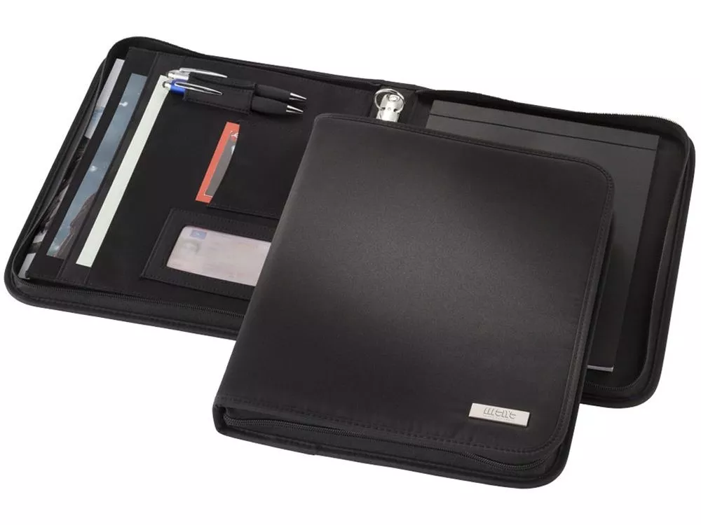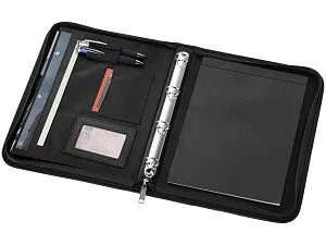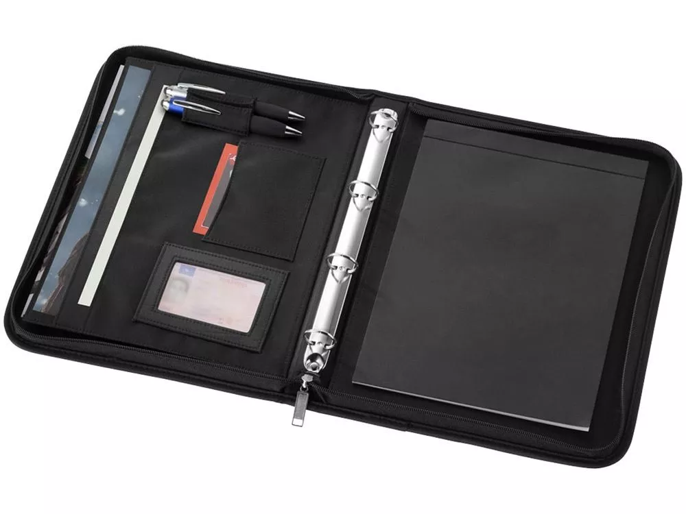 Папка Stanford A4 на молнии. Папка с застежкой-молнией, папкой-регистратором, карманами для документов и блокнотом с 20 страницами линованной бумаги. Ручка и принадлежности не включены. Микроволокно.
