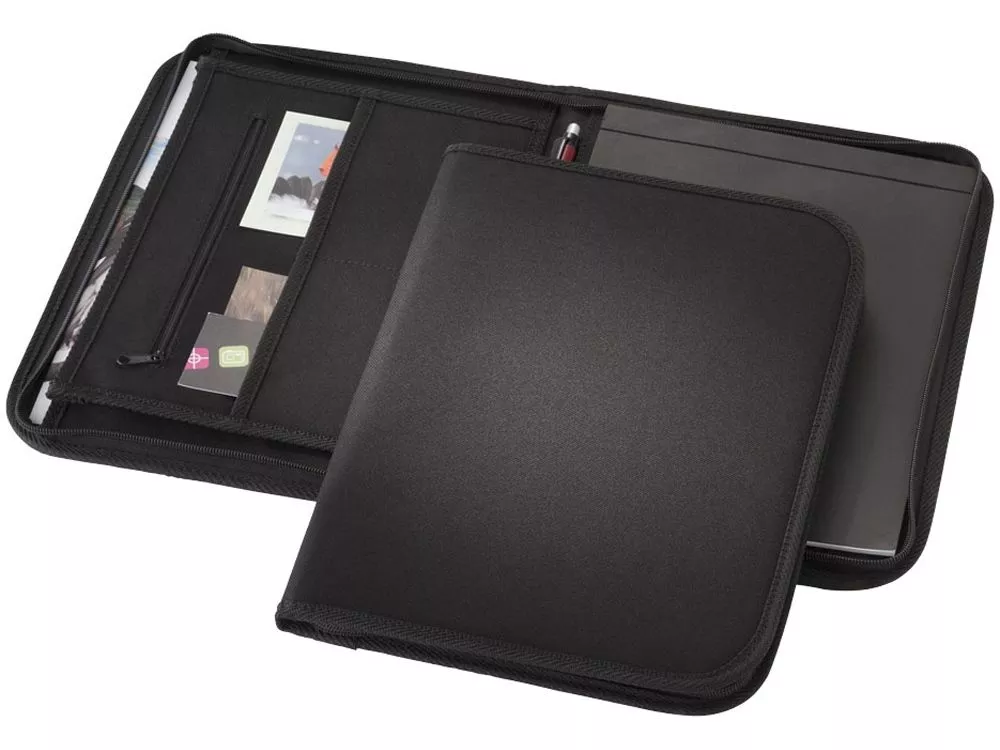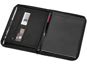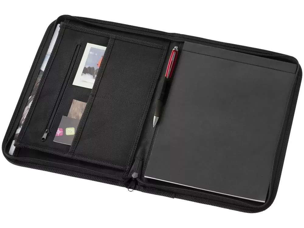 Папка Berkeley A4 на молнии. Папка с застежкой-молнией, карманами для документов и блокнотом с 20 страницами линованной бумаги. Ручка и принадлежности не включены. Полиэстер 600D.