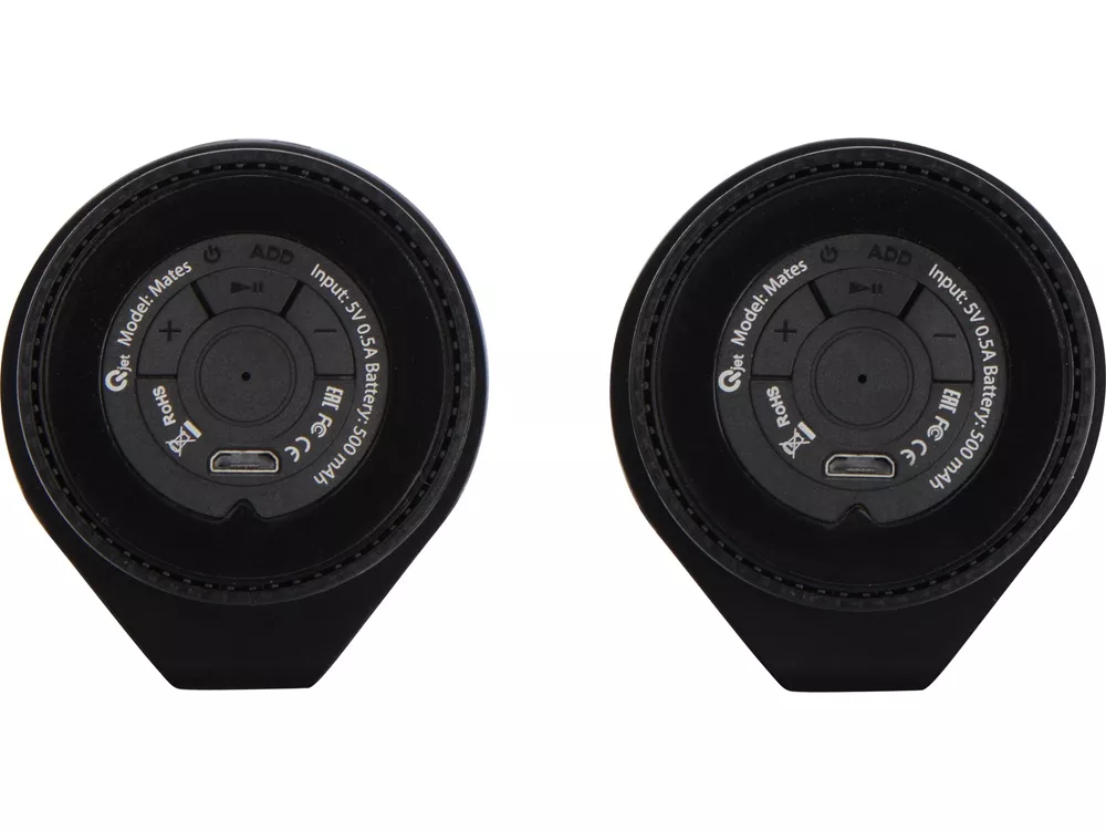 Беспроводные парные колонки Mates от Qjet - это идеальное сочетание качественного звучания и стильного внешнего вида. Колонки поддерживают технологию TWS - это значит, что колонки могут воспроизводить музыку в стерео режиме при подключении к одному устройству. Также вы можете подключать каждую колонку по отдельности. Встроенный аккумулятор на 500 мАч позволяет каждой колонке играть до 4 часов. Колонки притягивают не только взгляд, но и приятны на ощупь, благодаря корпусу из полированного металла и покрытию из искусственной кожи. Динамики декорированы акустической тканью. - Превосходный насыщенный звук. - 2 режима: слушайте одну колонку или две в режиме стерео. - Силиконовые кольца-подставки с ремешками в комплекте. - Качественные материалы. Для подключения двух колонок в режиме стерео: включите обе колонки и подождите несколько секунд, пока они соединятся между собой. Далее в поиске Bluetooth-устройств найдите и подключитесь к Mates.
