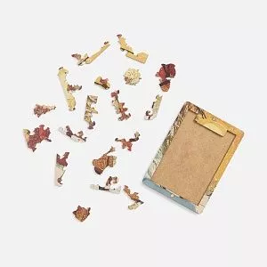 Деревянная упаковка с магнитной крышкой сохранит все элементы в целости и вызовет желание поскорее собрать пазл.