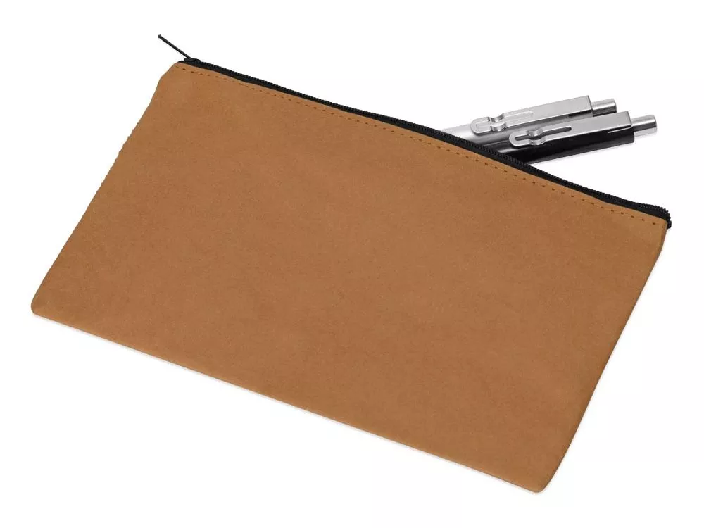 Пенал-косметичка из бумажных волокон - стильный и экологичный подарок. Пенал с одним вместительным отделением застегивается на молнию. Подходит как для хранения канцтоваров, так и для других мелочей. Может выполнять роль универсальной сумочки-косметички, которую можно всегда взять с собой. Можно стирать. Трафаретная печать (1 цвет (цветные изделия)) на данный товар осуществляется бесплатно. Оплачивается только настройка оборудования в размере 7000 рублей на весь тираж.