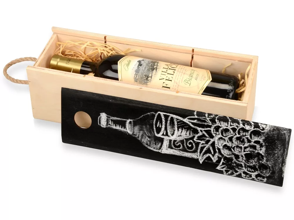 Эко-пенал для алкоголя с возможностью написать индивидуальное послание на грифельной доске. Время примитивных подарков безнадежно ушло. Сегодня важно, чтобы подарок вызывал яркие эмоции! Хотите креативно презентовать бутылку вина, шампанского или другого алкоголя? Выбирайте пенал с крышкой, покрытой грифельной краской – рисунок или пожелание, написанное от руки, обязательно запомнится получателю. Материал пенала – березовая фанера. В данном пенале для вашего удобства уже находится деревянная стружка. Она сохранит бутылку от повреждений в процессе перевозки и повысит эстетическую значимость подарка.