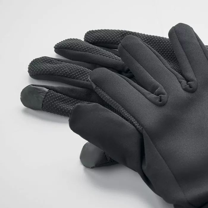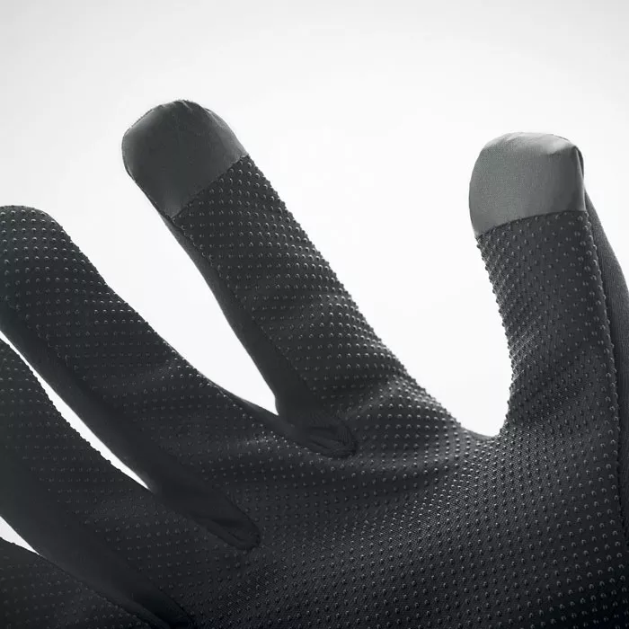 Сенсорные перчатки для смартфона из полиэстера. Два пальца с сенсорной функцией и противоскользящим покрытием на ладони и пальцах из ПВХ.