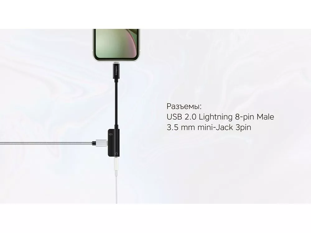 • Стерео • Заряжай телефон без отрыва от музыки! Спецификация: USB 2.0 Разъемы: USB 2.0 Lightning 8-pin Male 3.5 mm mini-Jack 3pin (стерео) USB 2.0 Lightning 8-pin Female (только для зарядки) Рабочее напряжение: 5В Размеры: 125 x 180 x 10 мм Вес:13 ± 2 г