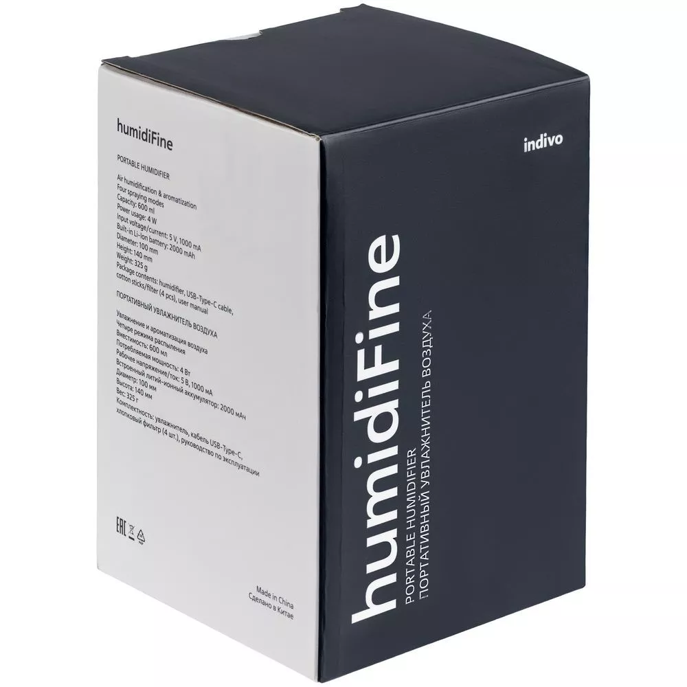 Переносной увлажнитель humidiFine насыщает влагой воздух в помещении, обеспечивая комфортный и здоровый микроклимат в течение всего рабочего дня. Четыре режима работы и два отверстия для распыления — можно отрегулировать параметры увлажнения под индивидуальные потребности.