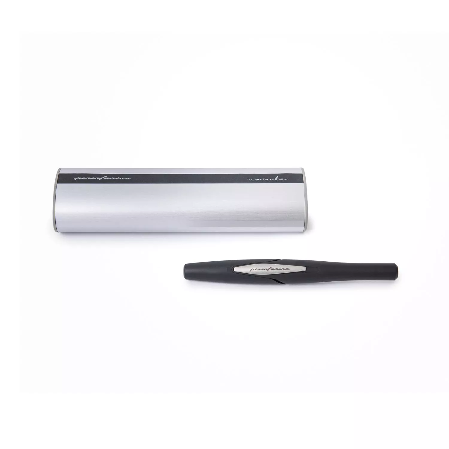 Перьевая ручка из новой коллекции посвященной 90летию бренда - PF NOVANTA представляет собой квинтэссенцию дизайна и неповторимого стиля бренда за его 90-летнюю историю, в которой прошлое, настоящее и будущее сочетаются в идеальной гармонии. Сделана полностью в Италии. Корпус черного цвета с серебристыми деталями. Оригинальный вырез колпачка. Фидер (устройство подачи чернил) ручки выполнен с помощью микромеханической техники, специально откалиброван, обеспечивает длительный срок службы чернил и защищает при перепадах атмосферного давления и температуры. Перо стальное, тонкое F. Корпус ручки выполнен из алюминия, длина ручки 15 см, диаметр 2 см, вес 50 гр. Упакована в серебристую округлую подарочную коробку. «Итальянский стиль означает чувство пропорции, простоту и гармонию линий, такие, что спустя значительное время все еще остается что-то более живое, чем просто воспоминание о красоте» - Battista Pinin Farina
