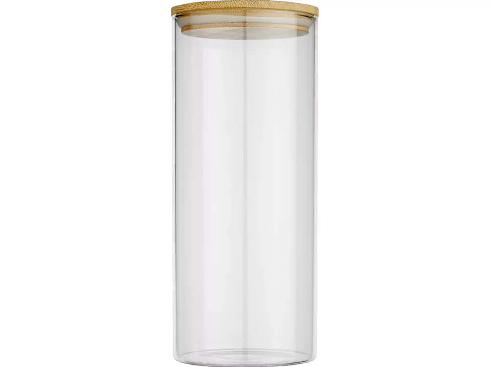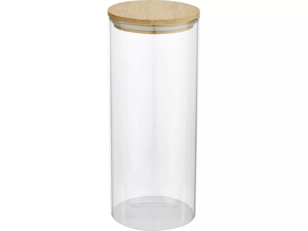 Большой пищевой контейнер из стекла с бамбуковой крышкой. Он сочетает в себе преимущества стекла, которое является безопасным и прочным материалом, с возобновляемыми свойствами бамбука. Стеклянный контейнер (без крышки) можно использовать в микроволновой печи и посудомоечной машине. Упакован в коробку из крафт-бумаги вторичной переработки. Емкость: 940 мл.