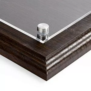 Шильд из акрила крепится к основе с помощью металлических болтов.