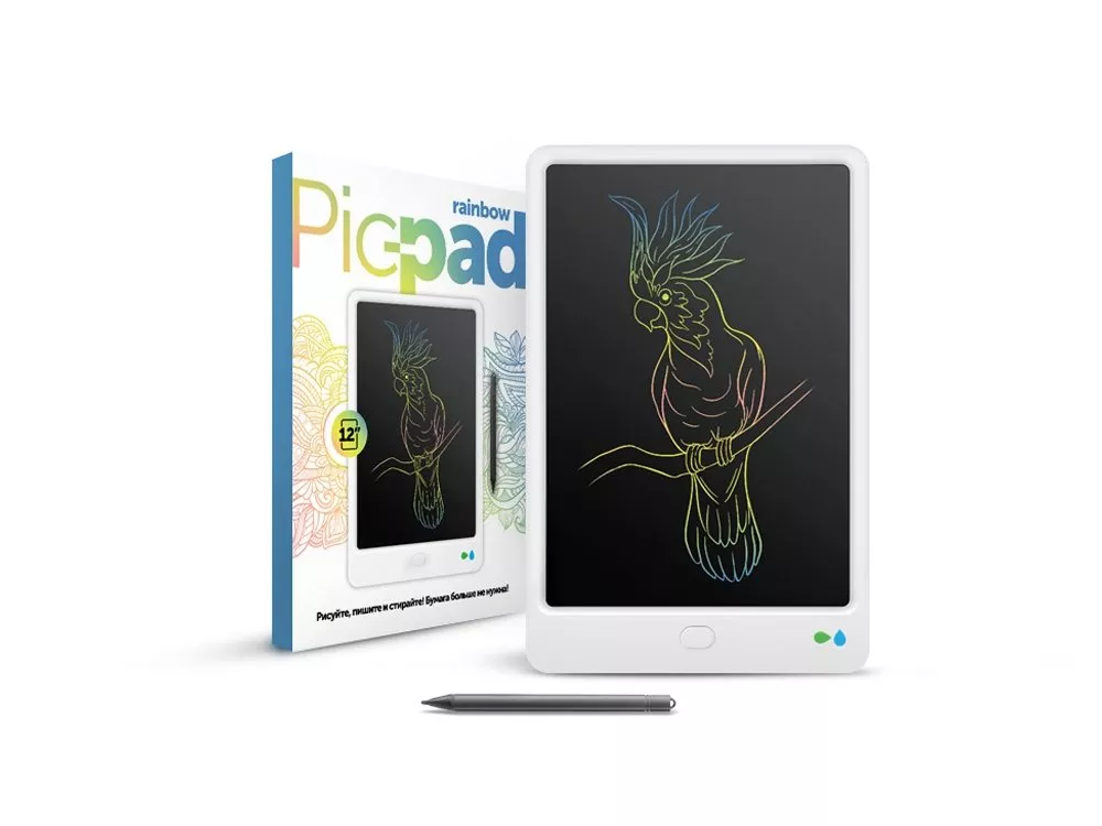 Бумага больше не нужна! Просто пишите и стирайте! Прочный, ультралегкий ЖК-экран спроектирован таким образом, чтобы вас не покидало чувство, как будто вы пишете на обычной бумаге. Экран PicPad Rainbow имеет несколько цветовых зон. Цвет линии меняется при перемещении стилуса по экрану. Она может быть синей, желтой, красной, оранжевой или зеленой. Изображение или надпись остаются до тех пор, пока они вам нужны, и могут быть стерты одним нажатием кнопки. Создавайте снова и снова!