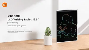 Графический планшет Xiaomi Mi LCD Writing Tablet 13.5'' позволяет делать заметки и забавные скетчи, оставлять послания своим близким, а также учить детей письму и рисованию. Его жидкокристаллический экран распознаёт до 1000 уровней силы нажатия, предоставляя возможность получить аккуратные тонкие росчерки и толстые линии при соприкосновении со стилусом. У планшета нет собственной подсветки и отражающего слоя, которые могли бы раздражать глаза. Пользоваться им так же комфортно, как и доской для маркеров. Планшет работает до года от одной часовой батарейки CR2025. Вы можете стереть нарисованное одним нажатием и снова рисовать. Тампопечать (1 цвет (белые изделия)) на данный товар осуществляется бесплатно. Оплачивается только настройка оборудования в размере 4000 рублей на весь тираж.