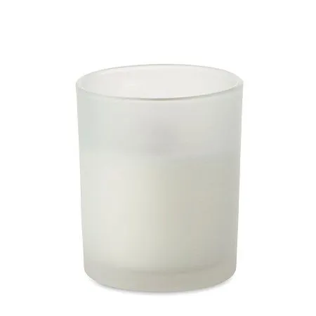 Vanilla fragranced plant based wax candle 80 gr in glass with wooden wick. Burning time 14 hours