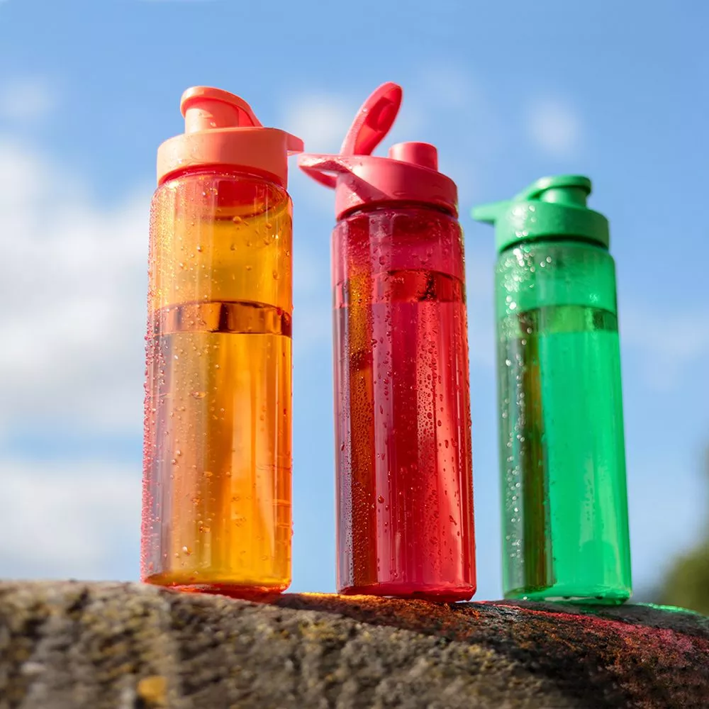 Бутылка для воды Ronny с клапаном. На крышке бутылки имеется крепление, которое позволяет закрепить бутылку на рюкзаке или на поясе.