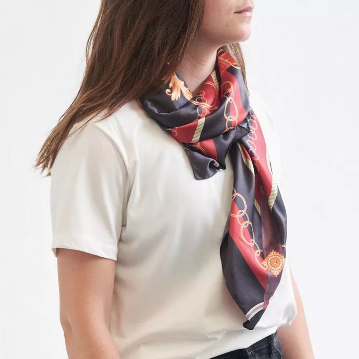 Платок из переработанного атласного полиэстера с рисунком.