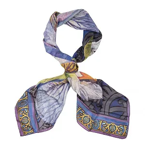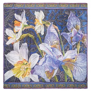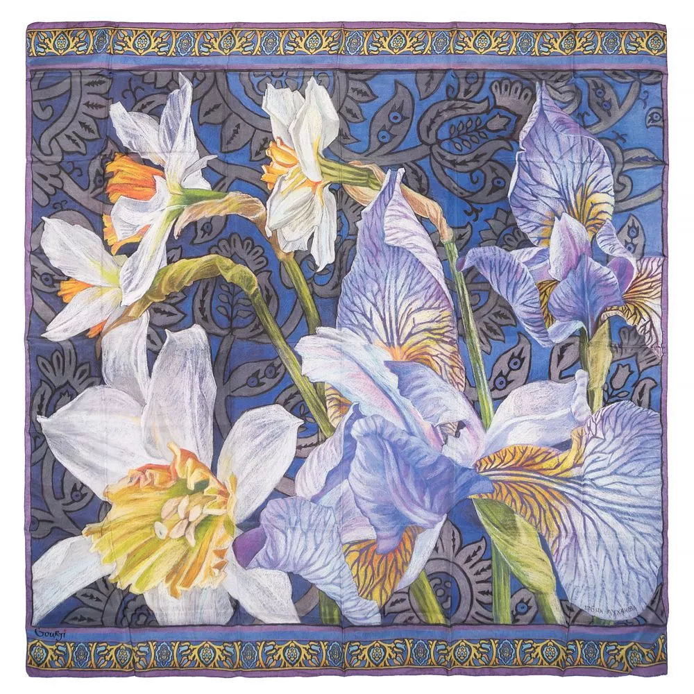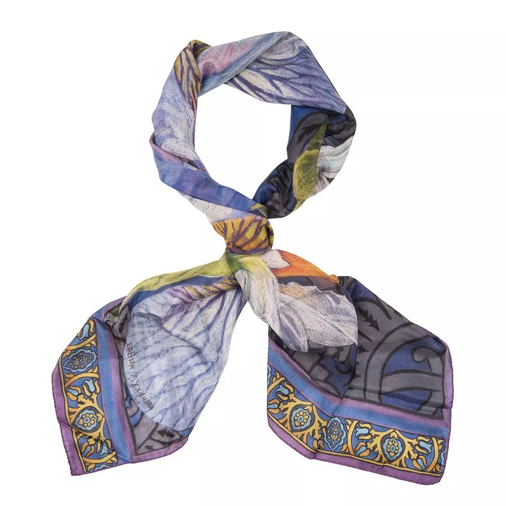 Особую изысканность платку "Ирис" придают не только сочные и яркие тона самого и приглушенные оттенки фона, но и асимметричность построения пространства, присущая стилю ар-деко.Мягкость линий и необычайная плавность очертаний растительного узора подчеркивают его красоту и элегантность.Особое внимание в ар-деко уделялось цветовому решению и именно поэтому так называемые «цвета тумана»: серебристо-лиловый, розовато-серый и голубой - составили основную палитру этого платка.Тонко выписанные рукой художника причудливо изогнутые полупрозрачные лепестки сиреневатых ирисов являются основой композиционного и цветового решения платка.ХАРАКТЕРИСТИКИ:Коллекция: Природа ЕвразииМатериал: 100% шелкРазмер: 90x90