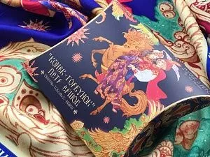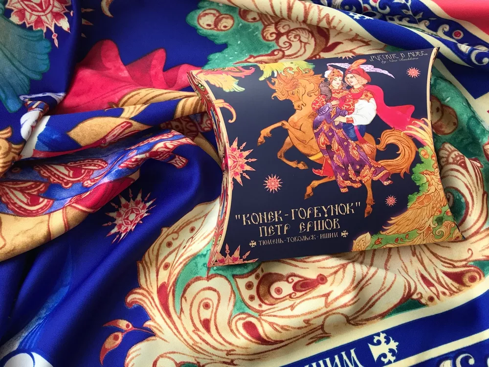 За горами, за лесами, За широкими морями, Не на небе - на земле Жил старик в одном селе… Известные каждому напевные строки сказки Конек-Горбунок неизменно возвращают нас в волшебный мир детства. Их автор – Петр Ершов – родился в 1815 году в маленьком селе Безруково Ишимского уезда Тобольской губернии, и, будучи еще совсем молодым, яркой звездой взошел на литературном небосклоне России. Прочитав сказку юного дарования, сам великий Александр Сергеевич Пушкин сказал: Этот род сочинений я могу теперь оставить - и Петр Ершов был принят в круг петербургских писателей.В этом году сказке из золотого фонда русской литературы, переведенной на все языки мира, исполняется 185 лет. Ее яркие краски мы перенесли на шелк и создали платок Конек-Горбунок. Благодаря тонкой работе дизайнера, со страниц книги, как живые, сошли герои любимой с детства истории: Иван, прекрасная Царь-девица и волшебный Конек-Горбунок. А в роскошных орнаментах сплелись легендарное перо Жар-птицы, Красное Солнышко и Месяц… Пусть этот платок принесет в Вашу жизнь немного чуда и наполнит ее вдохновением! Советы по уходу: -Наши платки сделаны с душой и нуждаются в ответной душевной заботе и внимании. -Они практически не мнутся, очень приятные на ощупь, нежные и мягкие. Любят бывать на людях, посещать светские мероприятия, не выносят одиночества. -Всегда готовы к экспериментам и смелым сочетаниям. Прослужат верой и правдой долгие годы, никогда не выйдут из моды и всегда будут уместны и кстати. -Ручная стирка 40 градусов.