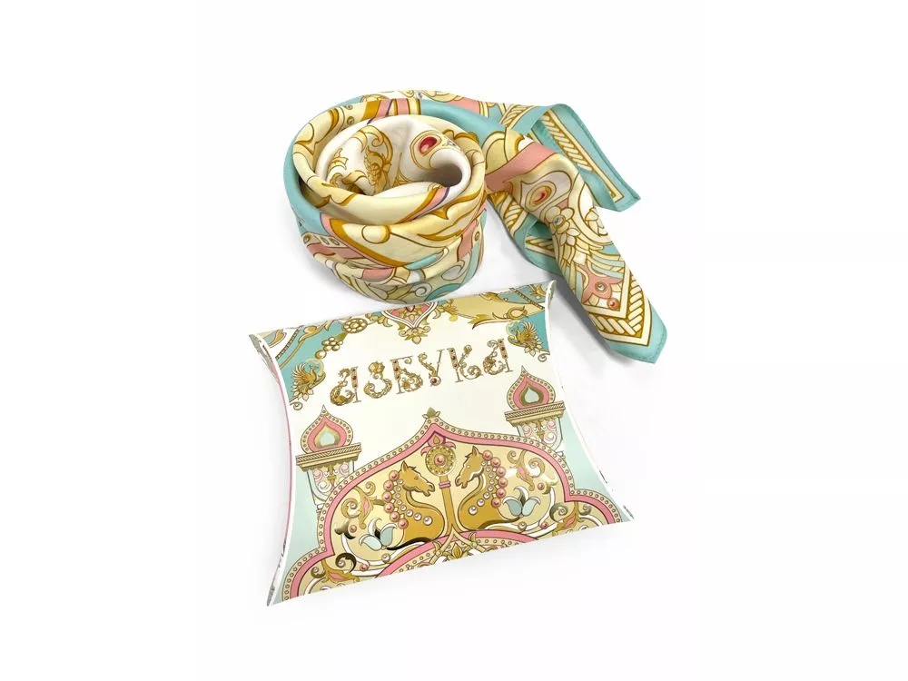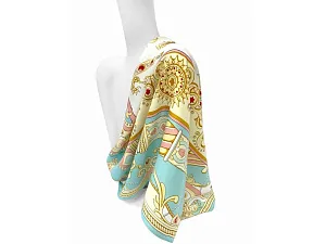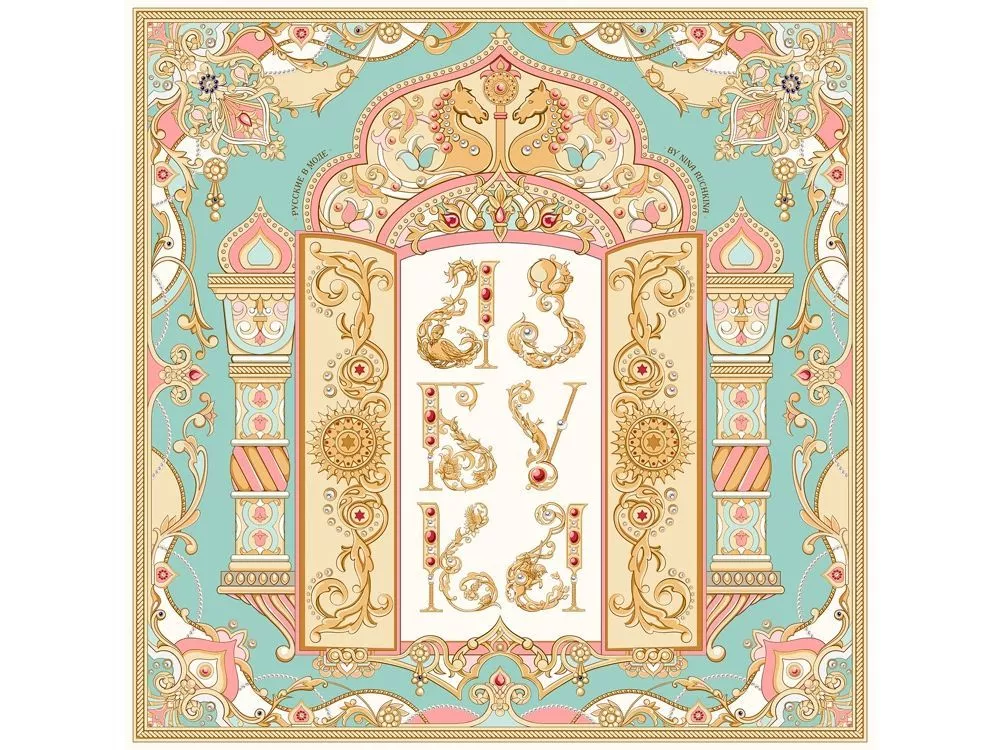 Платок Русская Азбука от дизайнера Нины Ручкиной - это зашифрованное послание предков, явившееся на тонкой материи. Мотивы русской архитектуры обрамляют Буквицы, щедро украшенные ажурными орнаментами. Тонкое искусство резных наличников на Руси имело свой сакральный смысл. Вот и наши художники обратились к шедеврам царственной резьбы, чтобы заключить в неё затейливые Буквицы. Замысловатые первые буквы текста всегда были важной частью искусства украшения книг. Таким образом любой текст приобретал сказочный и торжественный вид. Буквица – это начало записанной истории, пограничная точка, в которой повседневная жизнь прерывается и возникает другой мир – тот, о котором рассказывает текст. Мы уверены, что любой повседневный образ, дополненный Русской Азбукой станет неповторимым. Мы желаем, чтобы любой день с этим аксессуаром всегда превращался в удивительный путь, полный захватывающих открытий, творчества и волшебства.