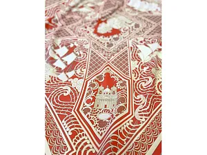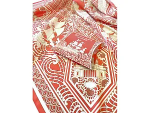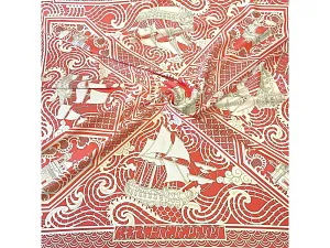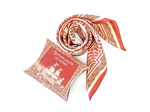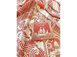 Дизайн посвящён чрезвычайно редкому и сейчас уже почти забытому косторезному искусству. Музеи мира хранят великолепные образцы ларцов, шкатулок, миниатюрных шкафчиков, выполненных в технике ажурной холмогорской резьбы по кости. Тематика платка - Петровский Флот. В центре - декоративная резная пластина в пышном обрамлении с профилем великого русского самодержца Петра I. По углам - резные вставки с узнаваемыми архитектурными шедеврами Петербурга разных времён: Нарвские триумфальные ворота, Здание Главного адмиралтейства, Троицкий собор Александро-Невской лавры, Исаакиевский собор. Дополняют композицию петровские фрегаты, раскачивающиеся на волнах ажурного кружева. Платок Русская резьба по кости совмещает в себе традиции виртуозных мастеров и отвечает запросам нашего времени. В изысканный и модный аксессуар вплетена история, а сам по себе он является модным акцентом в образе современной девушки.