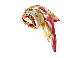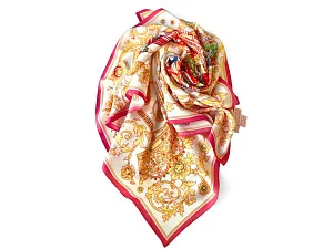 Скопище маленьких, разной высоты, башенок, составляющих вместе куст, букет цветов… или, еще лучше разноцветный кристалл, ярко сверкающий своими гладкими гранями в солнечных лучах…. Это слова французского путешественника Кюстина Астольфа, который посвятил книгу истории России 1839 года и очень точно описал знаменитый Собор Василия Блаженного. Уникальный памятник архитектуры был возведен в честь победы Руси над Казанским ханством по приказу Ивана Грозного. Собор объединяет сразу 11 церквей с пестрыми куполами разной высоты, образующими четкую форму восьмиконечной Вифлеемской звезды — символа Богородицы. Сказочный вид собора отражен на золотом фоне новинки от бренда Русские в моде by Nina Ruchkina. Настоящее восьмое чудо Света обрамлено царскими коронами и райскими птицами, свидетельствующими об уникальности и роскоши этой исторической достопримечательности, отстроенной 1 октября 1552 года на праздник Покрова Богородицы. Мы искренне надеемся, что новый дизайнерский платок сделает ваш образ еще более благородным, ярким и впечатляющим. Пусть он подчеркивает вашу женственность, оберегает с Божьей помощью и привносит чудеса в вашу жизнь! Над дизайном работали: Нина Ручкина, Наталия Александрова.