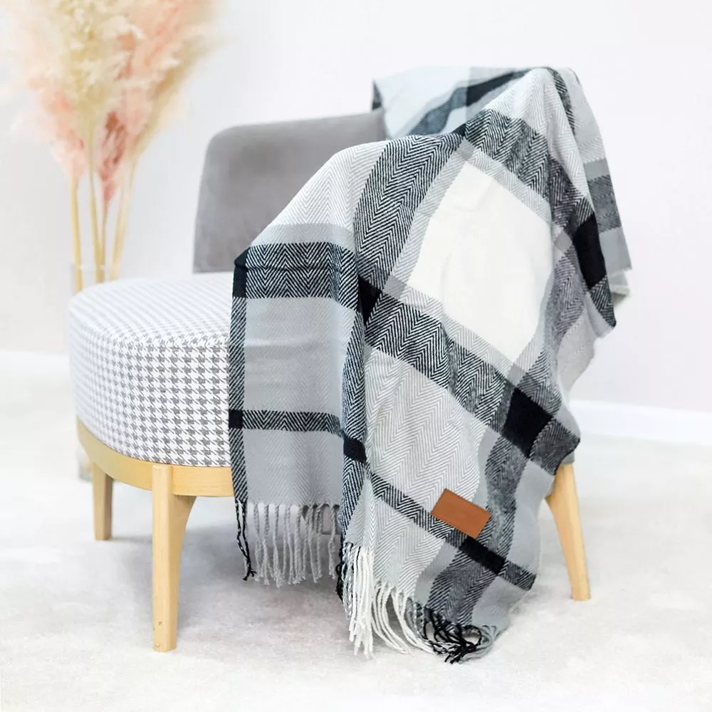 Плед GLAMA изготовлен из высококачественной акриловой пряжи, что позовляет добиться мягкости и тепла как от натуральной шерсти. Благодаря составу плед легкий, хорошо сохраняет теплоизолирующие свойства и надолго радует внешним видом. Также гипоаллергенен, не накапливает статическое электричество и легко стирается. Плед имеет классический узор “scotch”, с бахромой по краям. Для нанесения логотипа предусмотрена нашивка из кожзама (8x4 см). Плед упакован в пластиковый пакет, сложен в виде рулона с текстильным держателем.
