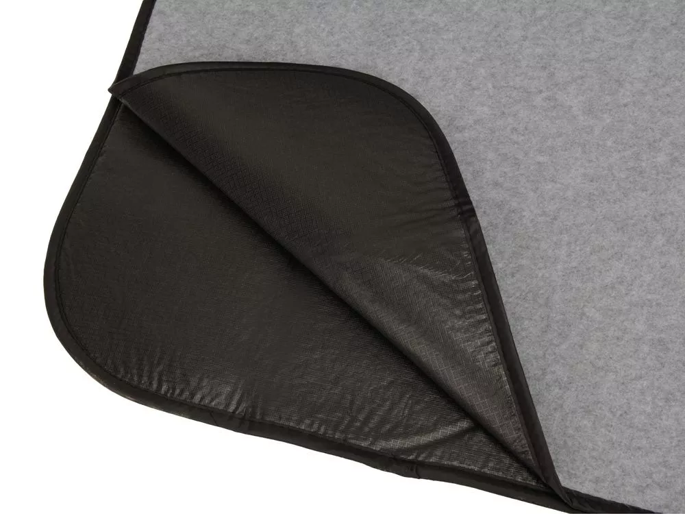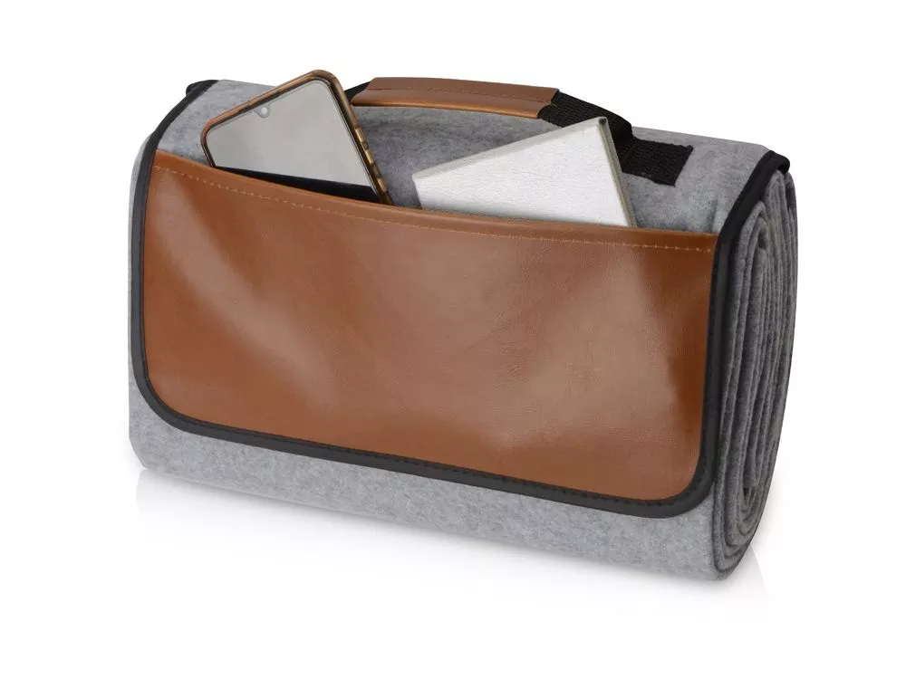 Мягкий и плотный плед не пропускает влагу благодаря непромокаемой подкладке. Для удобства использования предусмотрена ручка для переноски и карман на лицевой стороне для хранения мелочей или гаджетов размером 29 х 13 см. Тиснение (Фольга) на данный товар осуществляется бесплатно. Оплачивается только настройка оборудования в размере 6200 рублей на весь тираж.