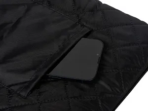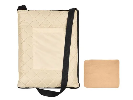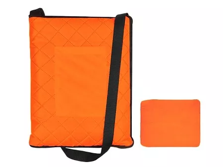 Двухсторонний плед с водоотталкивающим покрытием с одной стороны и мягким флисом с другой. Складывается в сумку на плечо и фиксируется с помощью молнии. В собранном виде имеет ремень для переноски и наружный карман для мелочей. Термотрансфер (1 цвет (цветные изделия)) на данный товар осуществляется бесплатно. Оплачивается только настройка оборудования в размере 9200 рублей на весь тираж.