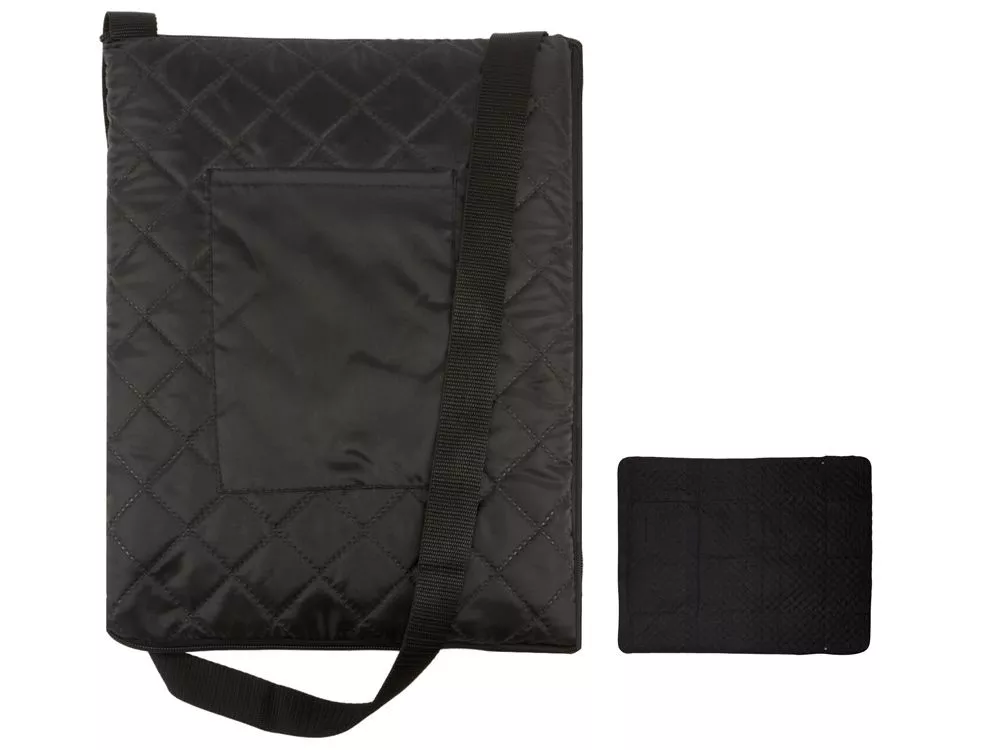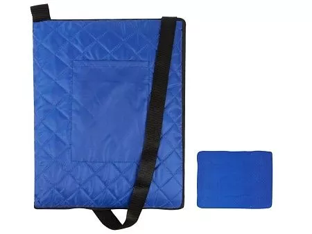 Двухсторонний плед с водоотталкивающим покрытием с одной стороны и мягким флисом с другой. Складывается в сумку на плечо и фиксируется с помощью молнии. В собранном виде имеет регулируемый по длине ремень для переноски и наружный карман для мелочей. Термотрансфер (1 цвет (цветные изделия)) на данный товар осуществляется бесплатно. Оплачивается только настройка оборудования в размере 10000 рублей на весь тираж.