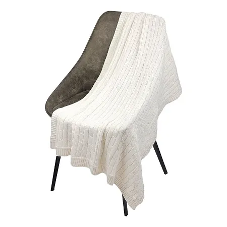 Плед трикотажныйВид вязки: «косы»7-й класс вязкиРазмер: 90 х 160 смВнешний состав: 60% хлопок, 40% полиэстерПлотность материала: 375 грамм на 1 м2Цвет: бежевыйСтрана происхождения: РоссияУпаковка: плед в индивидуальном п/э пакете
