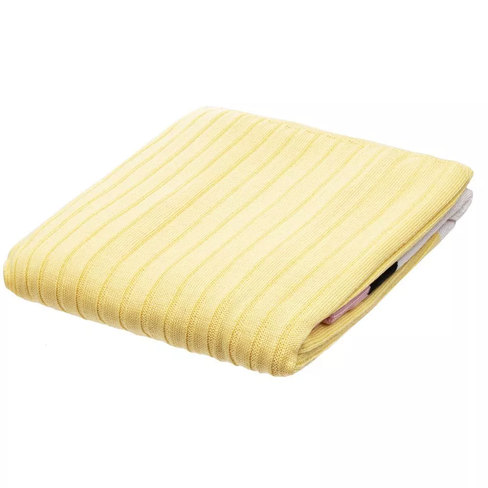 Яркий полушерстяной плед фактурной вязки Friolenta освежит современный интерьер: широкие контрастные линии создадут цветовой акцент в лаконичном дизайне спальни или гостиной.