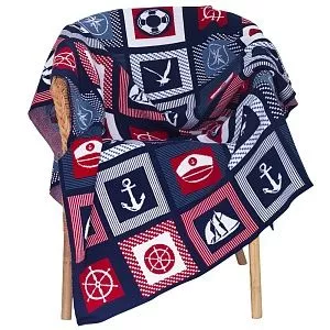 Модель: плед жаккардовой вязки, гладкая поверхность, 4 цвета нитей, рябая изнанка.