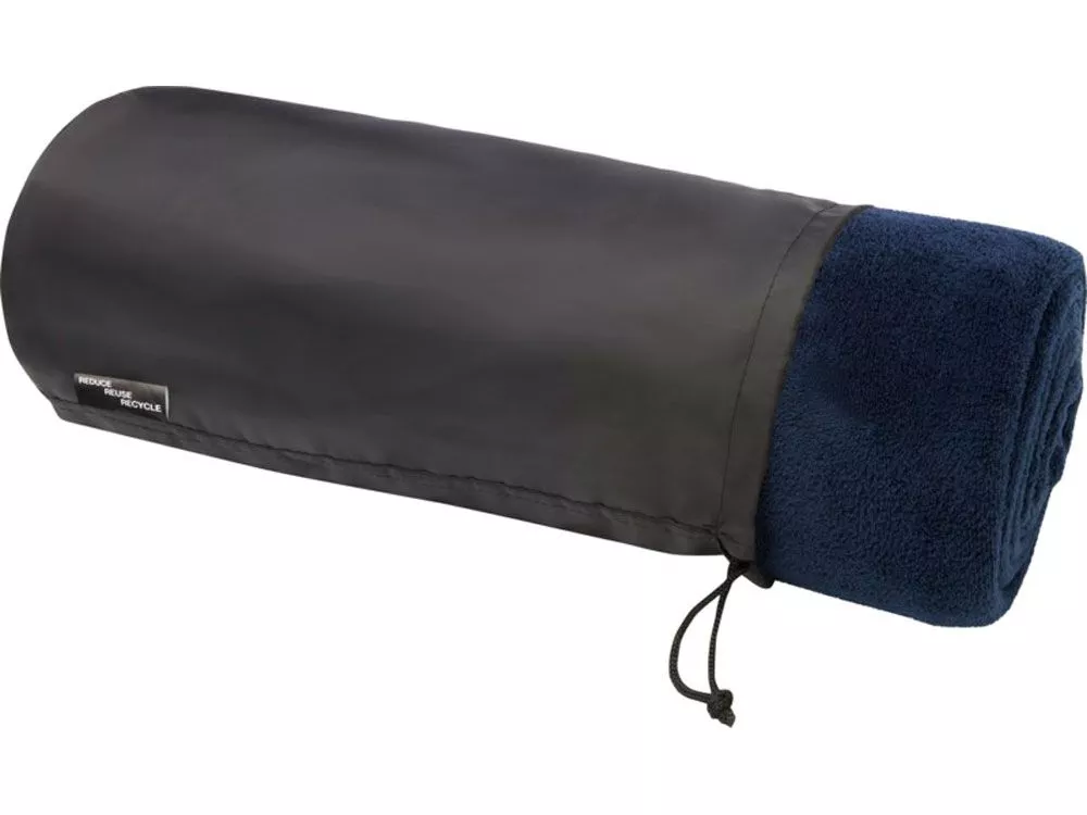 Ультрамягкий плед из синтетического трикотажного полотна из вторичного ПЭТ. 100% переработанный полиэстер, 240 g/m2. Поставляется с сумкой для переноски из вторичного ПЭТ 190T с застежкой на шнурке. Размер сумки d16 х 37 см. Упаковано в полиэтиленовый пакет из переработанного материала.