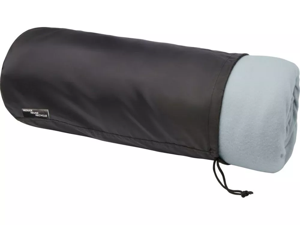 Ультрамягкий плед из флиса из вторичного ПЭТ и искусственного меха, 180 г/м2. Флис100% переработанный полиэстер. Поставляется с сумкой для переноски из вторичного ПЭТ 190T с застежкой на шнурке. Размер сумки d18 х 40 см. Упаковано в полиэтиленовый пакет из переработанного материала.