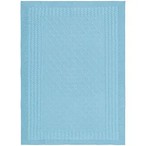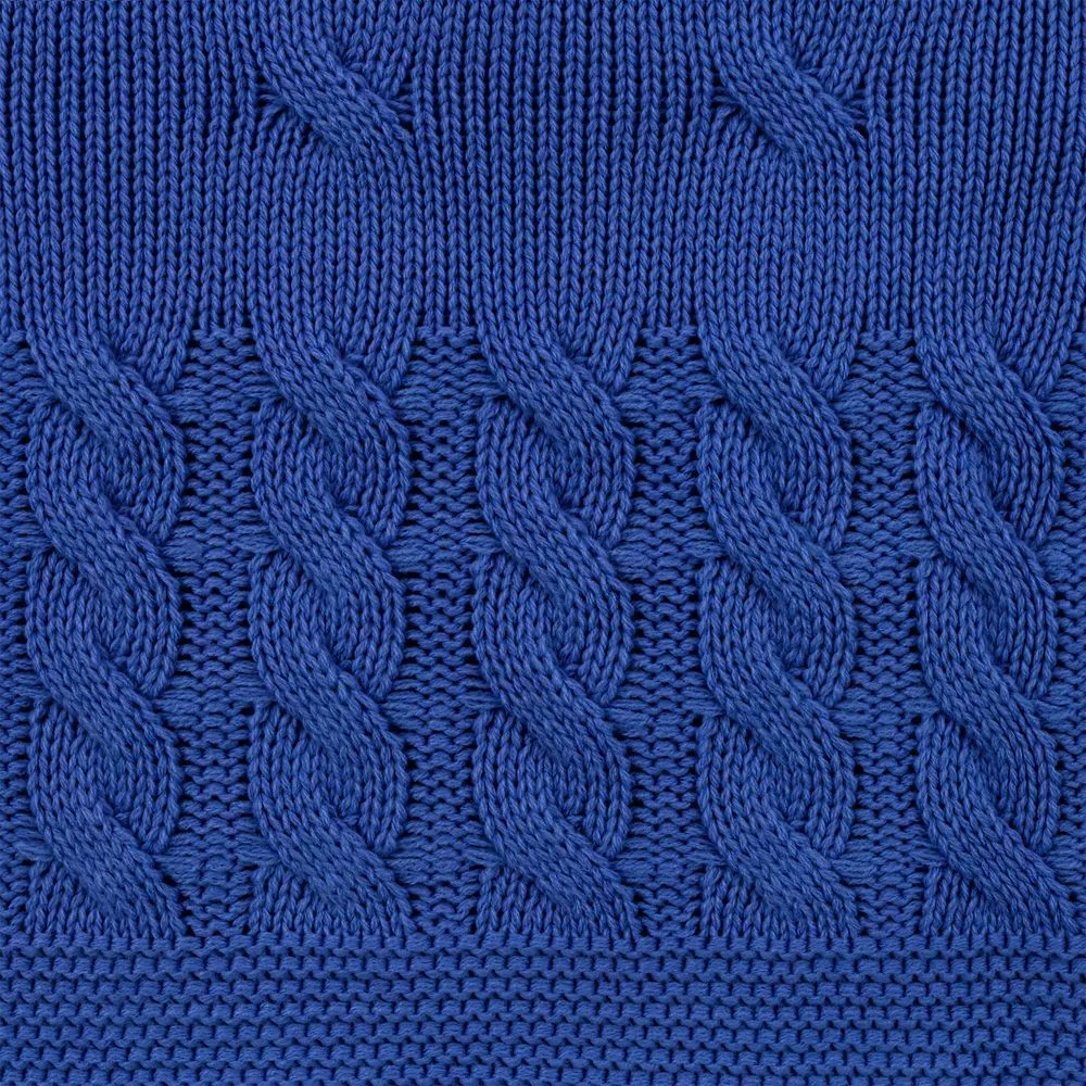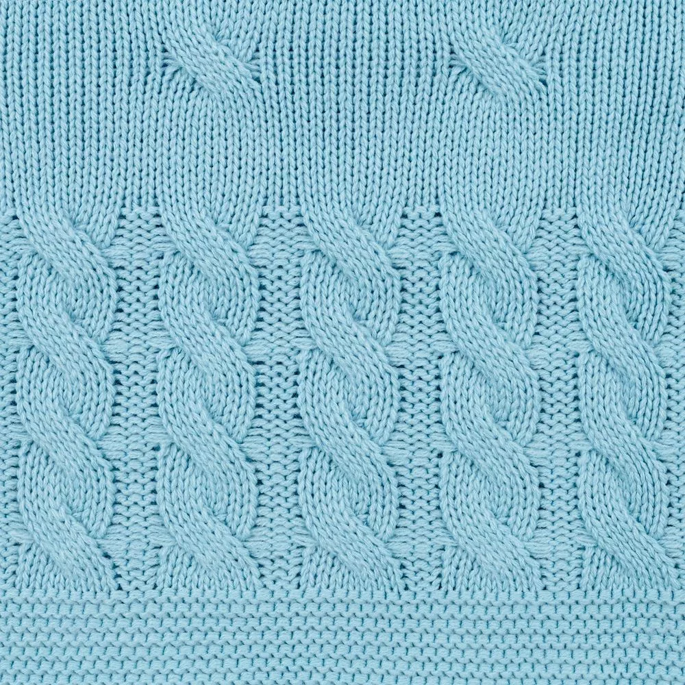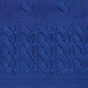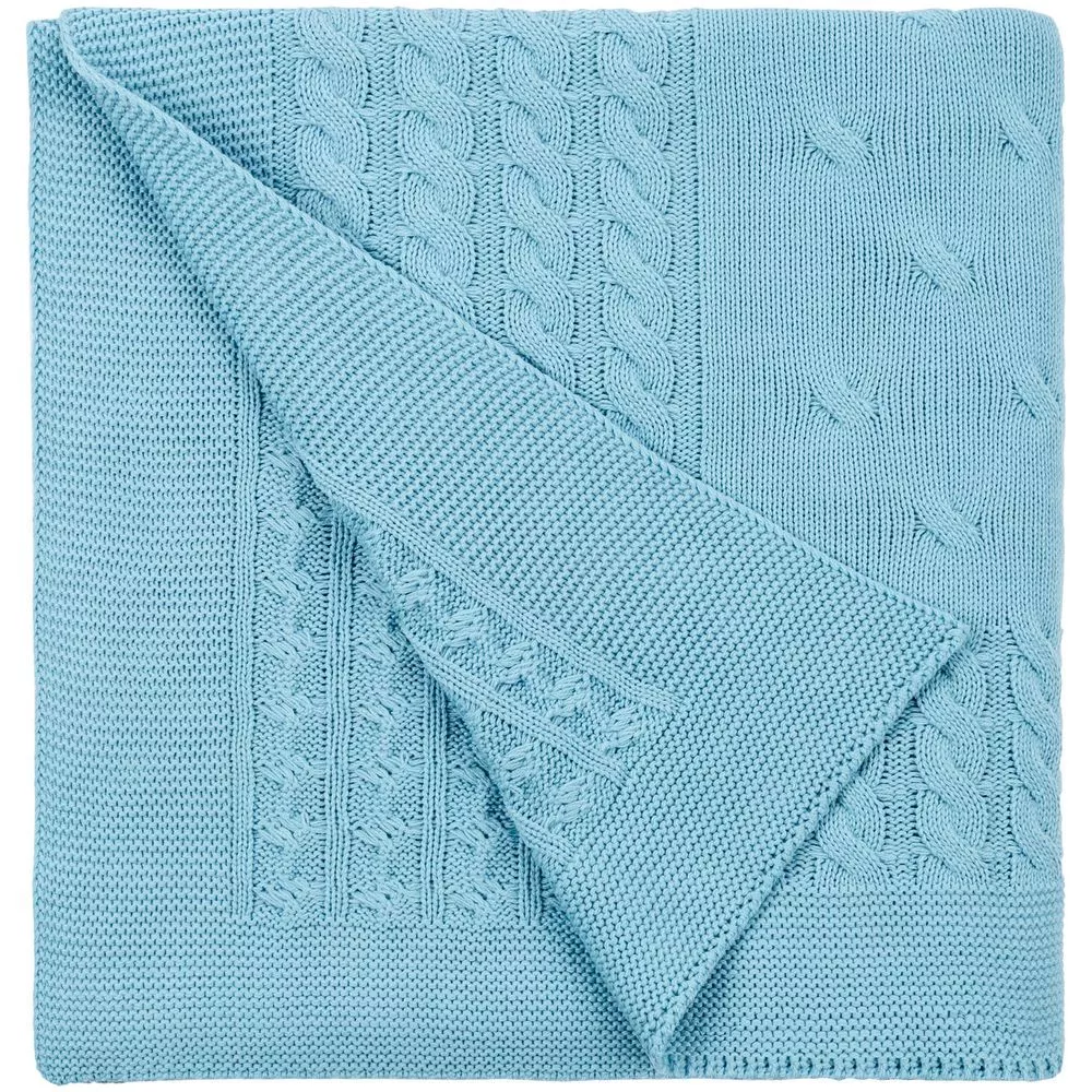 Модель: однотонный плед с фактурной вязкой, которая позволяет сделать его воздушным и объемным. Чередуя различные типы петель на гладком полотне, можно вывязать любую графику — логотип, текст, товарный знак.