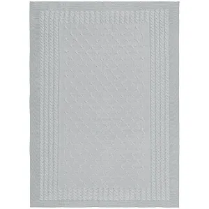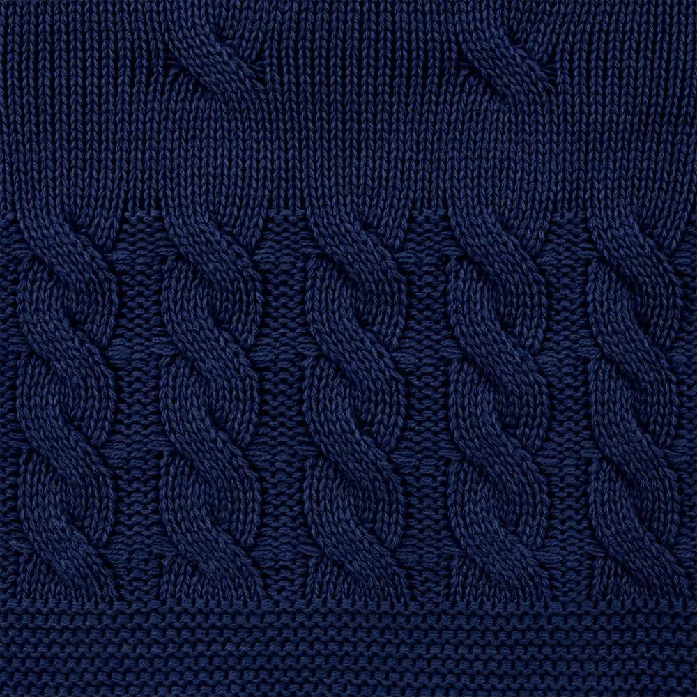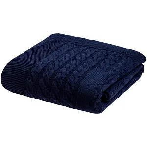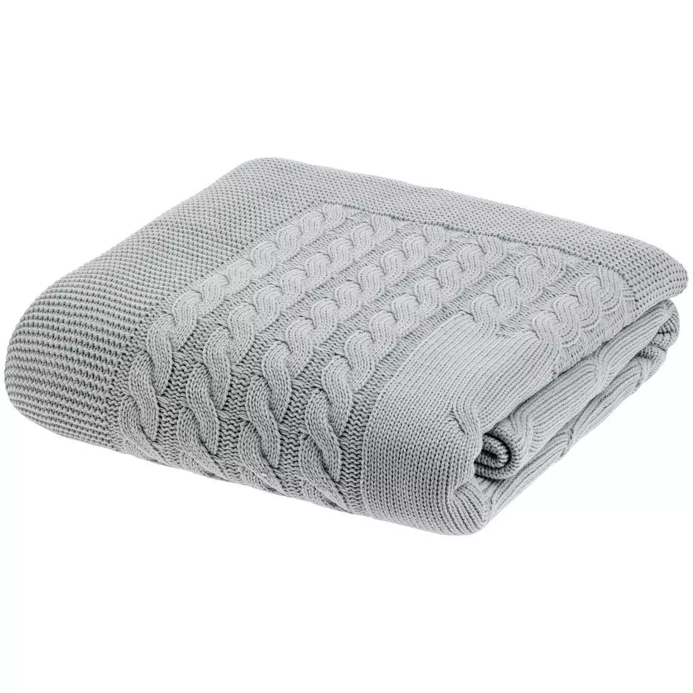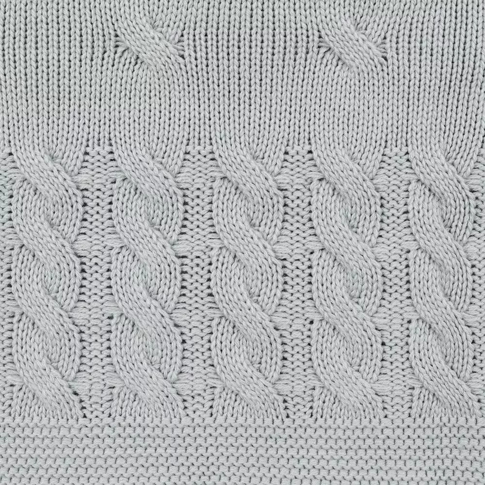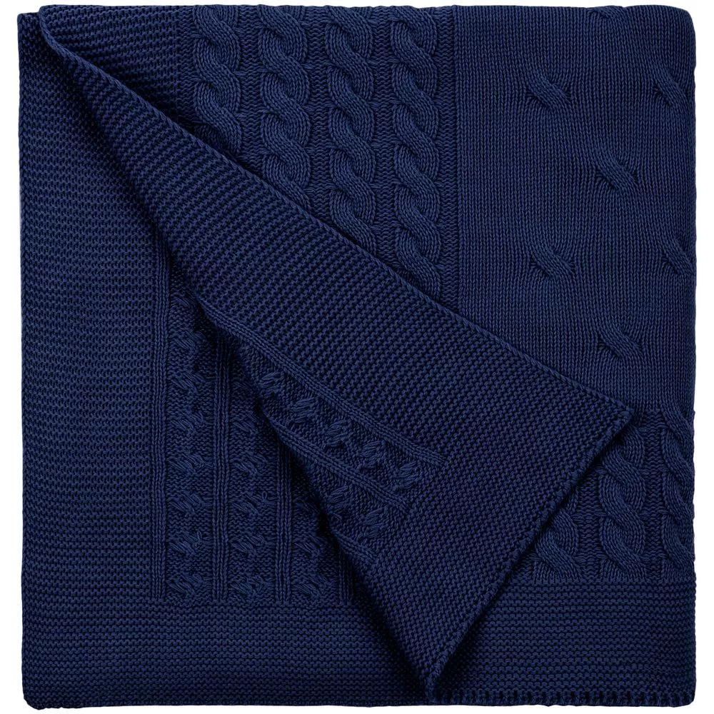 Модель: однотонный плед с фактурной вязкой, которая позволяет сделать его воздушным и объемным. Чередуя различные типы петель на гладком полотне, можно вывязать любую графику — логотип, текст, товарный знак.