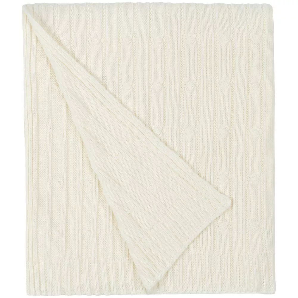 Модель: однотонный плед с фактурной вязкой, которая позволяет сделать его воздушным и объемным. Чередуя различные типы петель на гладком полотне, можно вывязать любую графику — логотип, текст, товарный знак.