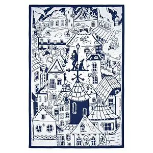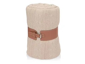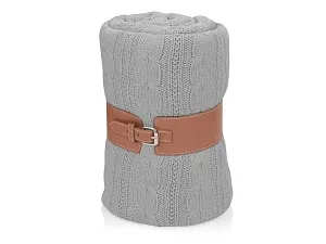 Плед с вывязанным логотипом и индивидуальным рисунком в фирменной цветовой гамме.