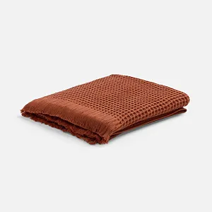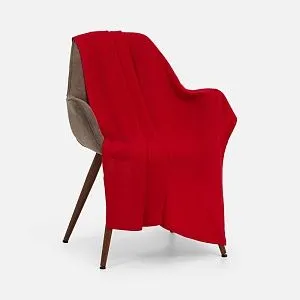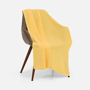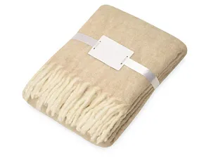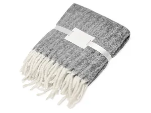 Плед с вывязанным логотипом и индивидуальным рисунком в фирменной цветовой гамме.