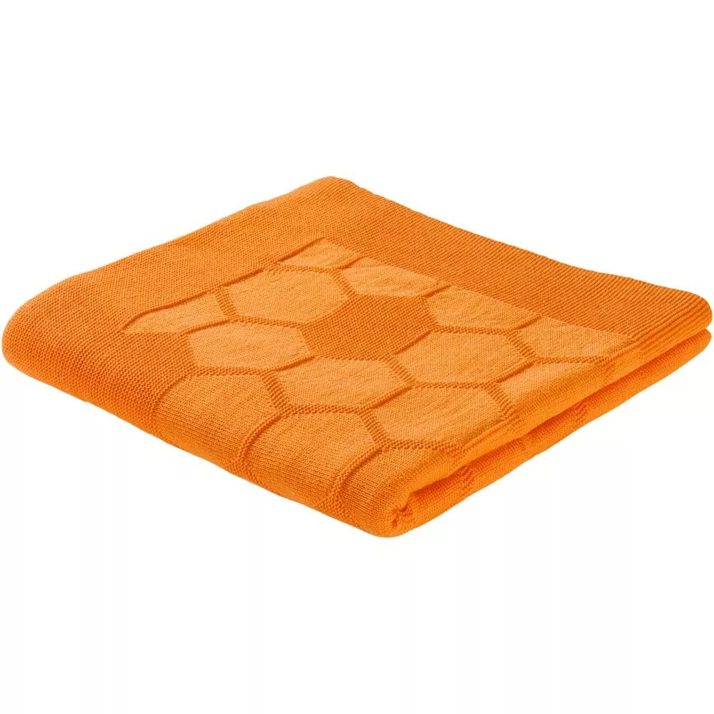Плед с вывязанным логотипом и рельефным узором в фирменном цвете вашей компании.