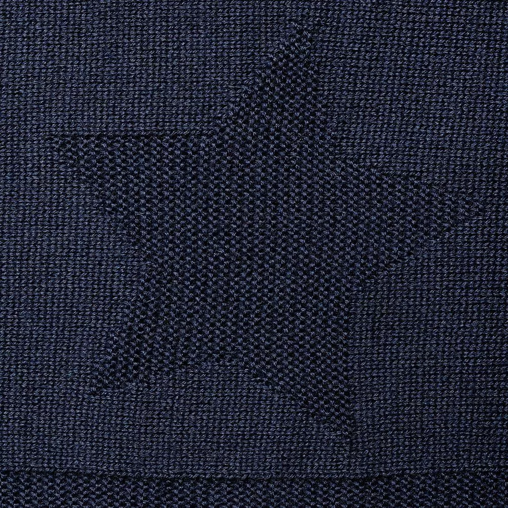 Модель: однотонный плед с фактурной вязкой, которая позволяет сделать его воздушным и объемным. Чередуя различные типы петель на гладком полотне, можно вывязать любую графику — логотип, текст, товарный знак.