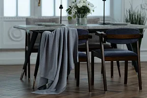 Плед из полушерстяной пряжи, поэтому прекрасно согревает и неприхотлив в уходе.