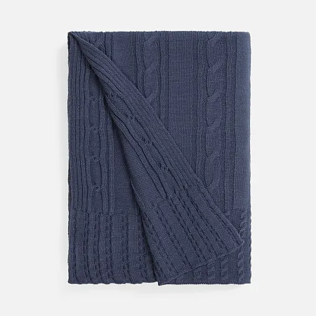 Тонкое переплетение вертикальных кос-жгутов создает благородную фактуру, где простота линий встречается с изысканной текстурой. Плед из мягкого акрила сохраняет тепло, оставаясь удивительно легким и воздушным.