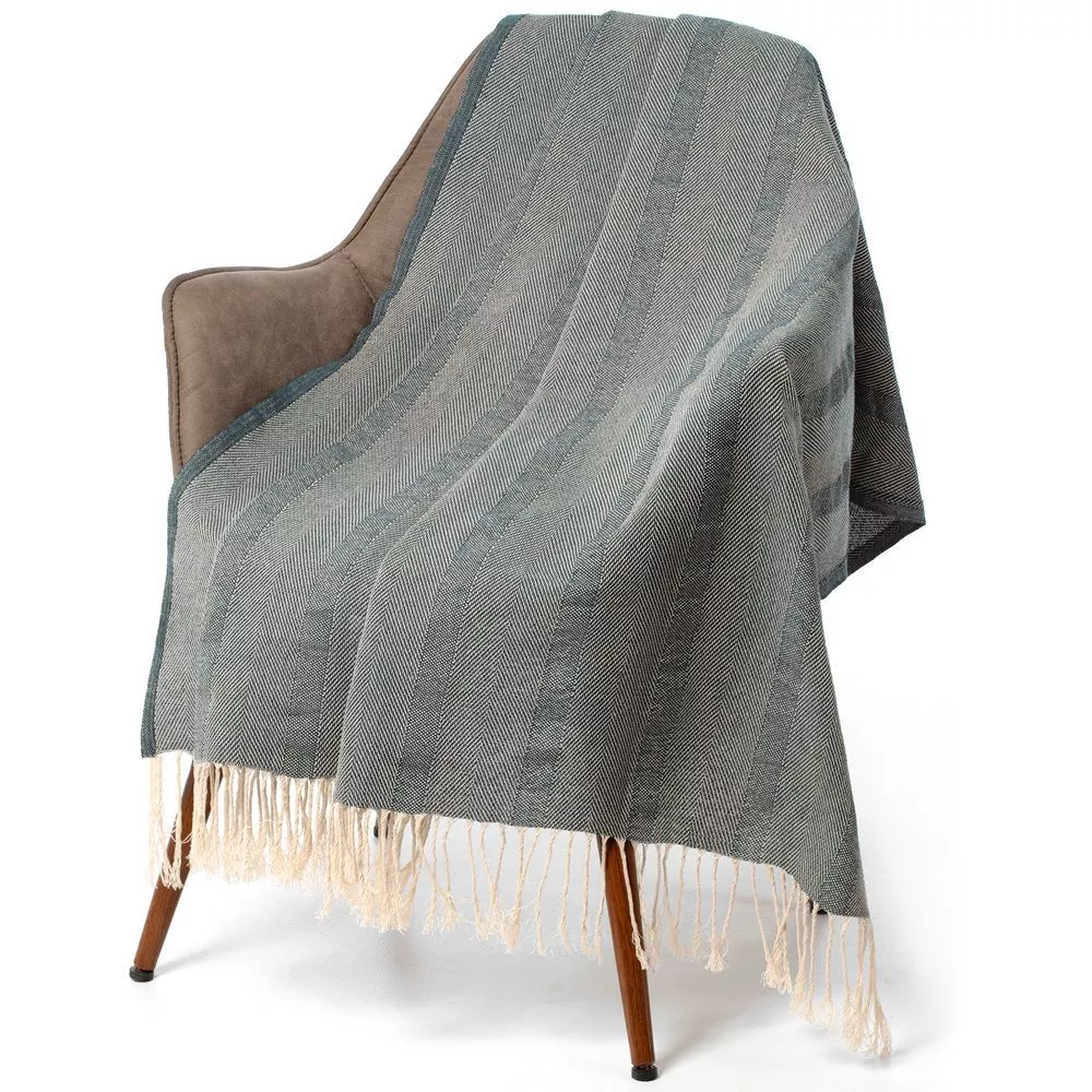 Тканый плед «Сенеж» — это натуральные цвета, комфорт в использовании и уют в доме.