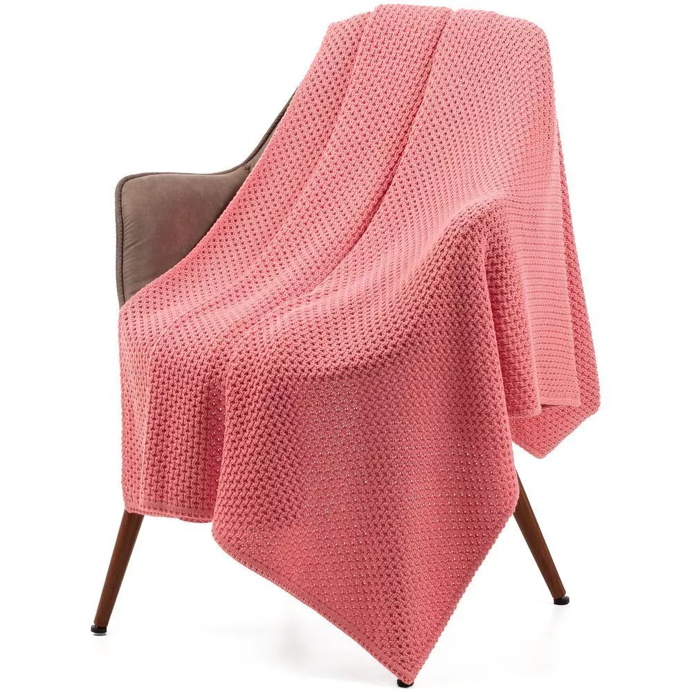 Плед с вывязанным логотипом и рельефным узором в фирменном цвете вашей компании.
