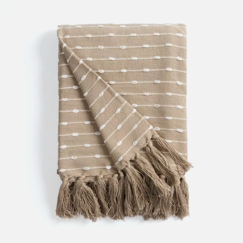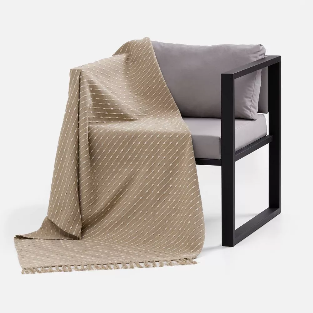 Фактурный узор в технике счетной вышивки, а также спокойные природные оттенки пледа Shimla создадут комфортное визуальное ощущение наряду с приятными тактильными ощущениями от натуральной основы пледа.