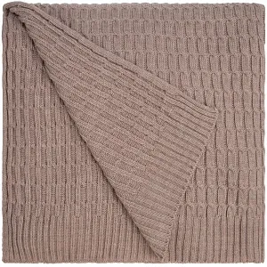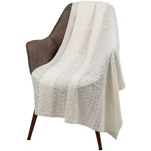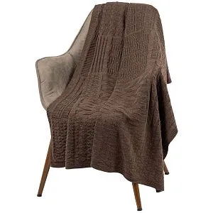 Модель: однотонный плед с фактурной вязкой, которая позволяет сделать его воздушным и объемным. Чередуя различные типы петель на гладком полотне, можно вывязать любую графику — логотип, текст, товарный знак.