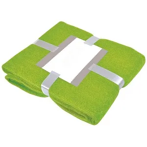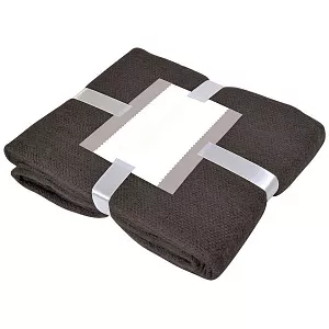Плед с вывязанным логотипом и рельефным узором в фирменном цвете компании.